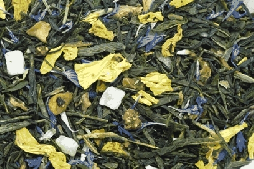 Zutaten:Grüner Tee Sencha, Karottenstücke , Ananasstücke (Ananas,Zucker) Erdbeeren,Kornblumblüten, Sonnenblumblüten,Aroma.